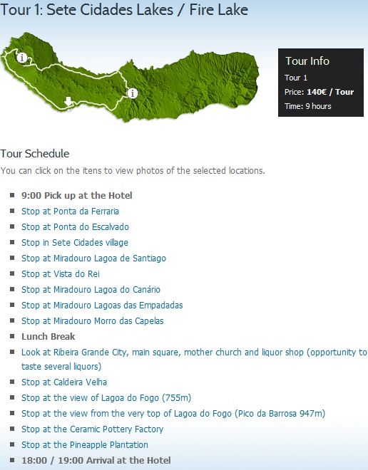 Our tour guide Gary picks the places on the list ( above )according to the weather conditions and the location in the island, so it doesn’t mean that you should always begin with the first place on the list and end with the last one ! we began our tour with the last place which is the Pineapple Plantation.. Gary showed usThe Map of Sao Miguel pointing at the places that we are going to visit that day and to our route .